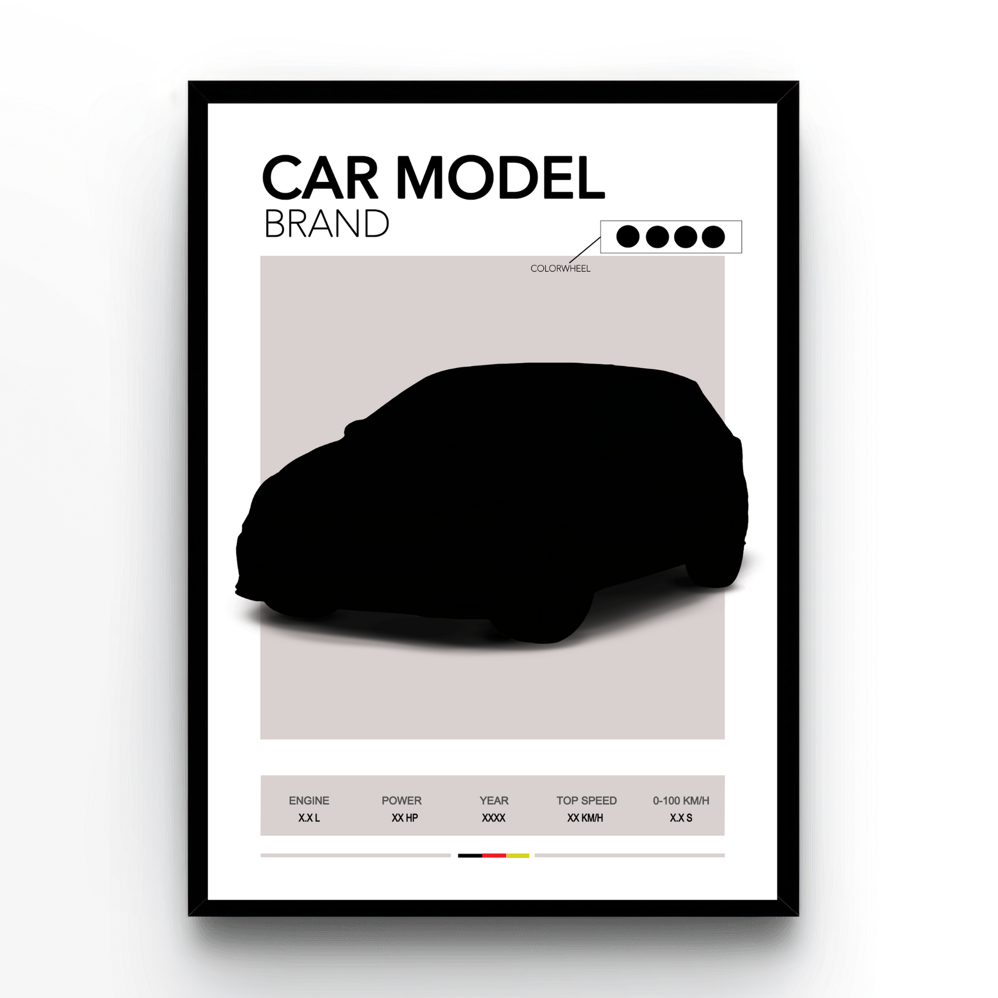 Ideal pentru garaj, birou, camera ta sau ca idee de cadou originală pentru un prieten pasionat de mașini, acest poster personalizat transformă orice automobil într-o piesă de design.